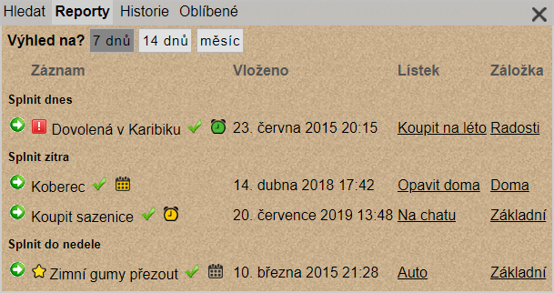 a zobrazí se seznam naposled přidaných a vyřízených záznamů. Lze tak snadno obnovit už splněnou poznámku.